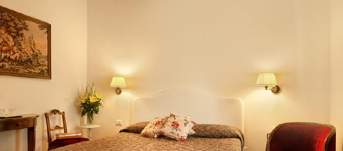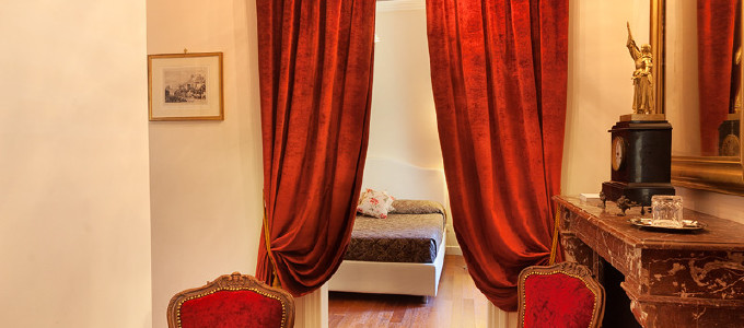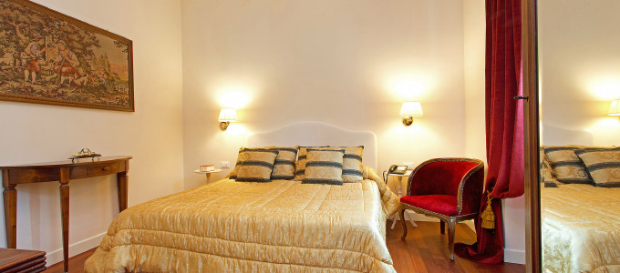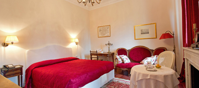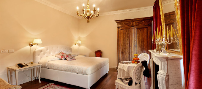 None of the rooms is similar to another. Each of them has got a special planimetry, original antiques and a unique atmosphere; every room has a wooden floor, beds with ergonomic mattresses, a period fireplace, a shower or a hydro massage bath. One of the rooms has got a balcony overlooking the hills, one is fitted with a golden mirror, one can boast a Louis XVI style chest of drawers, and there is also a small suite with a dressing room.