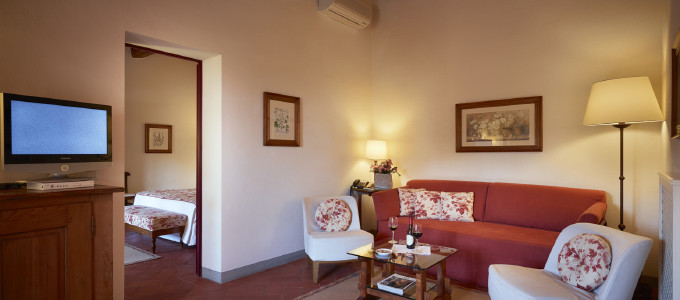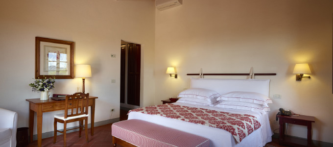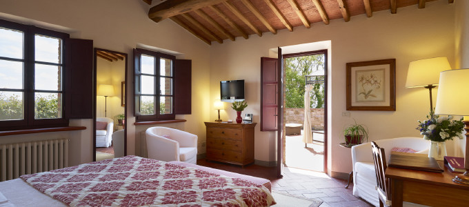 The Hotel Le Fontanelle offers 25 rooms divided into five different categories. All rooms enjoy a harmonious relationship with the outside world, providing spacious areas and suggestive atmosphere that highlight the Tuscan identity such as terracotta floors and beamed ceilings.
