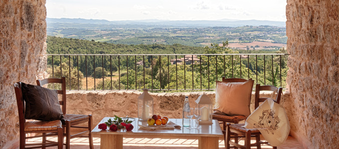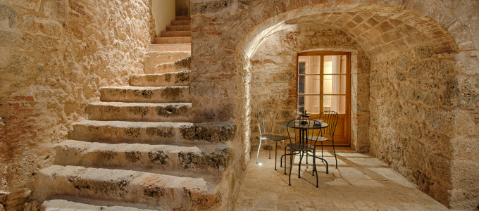 The Comfort Suites and Apartments, designed for families or groups of friends, are divided into suites with a magnificent view overlooking the hills of Siena from a panoramic terrace, and suites with an exclusive garden and living room with mezzanine.