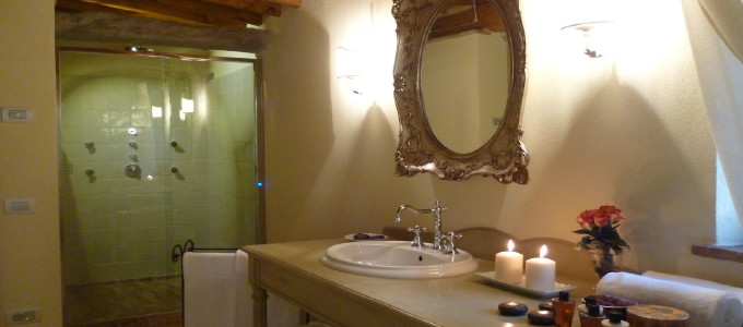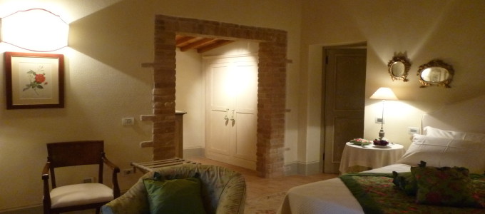 This suite is situated in the old barn. It is elegant and stylish and offers an unforgettable view at the rolling hills and the medieval village of Montefollonico. Antique furniture of deep red creates a warm and friendly atmosphere. There is a large bathroom on two levels comprising a fireplace, a shower box in travertine and crystal glass and large jacuzzi and chromotherapy which overlooks vineyards and fields of wheat.